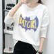 夏季休闲春秋季女装宽松长袖T恤女简约打底衫印花上衣韩版女装