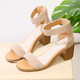 粗跟凉鞋女夏2017新款韩版一字带高跟鞋百搭露趾流苏罗马凉鞋裸色
