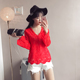 DY942春季新品2017韩版甜美喇叭袖两件套 纯色小吊带+套头蕾丝衫