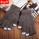 英伦风半指翻盖露指米字羊毛手套写字骑车保暖触屏加绒加厚手套男