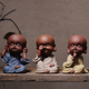 新款创意紫砂摆件三不小和尚陶瓷工艺品博古架摆设书房书架装饰