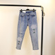 2017春夏新款韩版刺绣破洞毛边牛仔裤女显瘦直筒裤长裤百搭潮