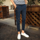 夏季薄款9分裤纯棉青少年男士韩版九分裤修身小脚休闲裤潮男裤子