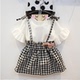 女童夏季新品套装 校园风短袖格子露肩T恤+纱裙短裙甜美两件套潮