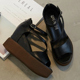 2017春款英伦流苏学院风女鞋复古皮鞋粗跟女单鞋防水台高跟厚底鞋