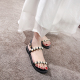 【少量】珍珠凉鞋女夏2017新款 百搭金属露趾平底平跟一字带凉鞋