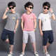 男童新品夏季T恤套装拼色纯棉短袖修身运动套中大童夏款两件套潮
