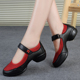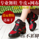 秋冬季新款广场舞鞋跳舞鞋红色女式增高健身鞋透气舞蹈鞋真皮软底