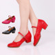 夏季新款舞蹈鞋女式现代广场舞鞋中跟软底真皮红舞鞋黑色跳舞鞋女
