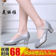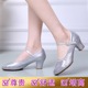 舞蹈鞋女 真皮软底中高跟交谊广场舞跳舞鞋 四季银色成人广场舞鞋