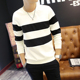 青少年男士长袖t恤衣服男体恤秋装修身圆领条纹打底衫男装秋衣潮