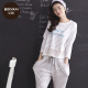 贝妍春夏女士纯棉睡衣时尚七分袖短裤女人开衫全棉家居服夏季套装