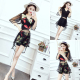 2017夏季新款时尚印花雪纺拼接露肩短袖开叉连衣裙+高腰短裤套装