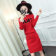 2017春装新款韩版时尚木耳边钉珠显瘦针织上衣+包臀半身裙套装潮