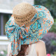 女士户外雪纺超大檐护脖子遮阳沙滩帽子 帽顶高透气波西米亚草帽