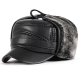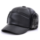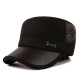 冬季中老年帽子男士冬天真皮质爸爸帽加绒护耳平顶军帽中年男帽子