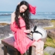 2017夏红色海边度假裙雪纺一字肩吊带抹胸露肩连衣裙沙滩中长裙女