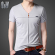 Q&W夏天男短袖t恤v领全棉半袖体恤衫男土青年鸡心领纯色上衣修身