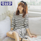 秋冬季长袖纯棉睡裙 女生可爱条纹性感长款全棉家居服长袖睡衣