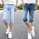 夏季薄款牛仔短裤男装七分裤弹性修身小脚青年男裤子7分裤马裤男