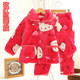 冬款三层夹棉加厚保暖小宝宝法兰绒家居服儿童珊瑚绒睡衣套装男女