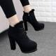 鱼嘴短靴女鞋超高跟2017春季新款罗马绒面粗跟防水台正品小码单鞋