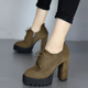韩版高跟鞋粗跟单鞋女防水台圆头绒面2017春秋新款系带深口鞋百搭