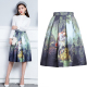 2016秋季新款时尚复古印花半裙高腰A字裙中长款蓬蓬裙伞裙半身裙