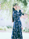 蜜搭 2017春新款 印花一字领复古自制女裙 仙美范文艺连衣长裙