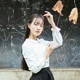 蜜搭/独舞/双层纯棉长袖打底衬衣 简约百搭翻领加厚白衬衫女17春