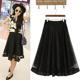 春夏新款女士半身裙女中裙钉珠纱网裙大裙摆显瘦女打底裙公主裙