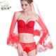 蜜桃杯无肩带新娘内衣抹胸上托聚拢防滑婚纱本命年大红色文胸套装