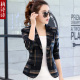2017春新款短外套女修身显瘦女西服格子长袖小西装一粒扣女士上衣