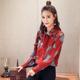 2017春装新款复古蝴蝶结雪纺碎花长袖学生休闲修身衬衣女