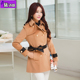 依诗欧2016秋冬新款毛呢外套中长款韩版修身翻领呢子大衣拼皮女