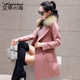 反季特价清仓 毛呢外套女 环保毛领 气质韩版修身中长款毛呢大衣