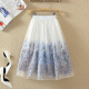 2017夏季新款韩版印花欧根纱半身裙百褶裙大摆裙高腰短裙女装裙子