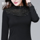 五公主高领蕾丝打底衫2016秋装新款黑色拼接长袖T恤立领纱衣女薄