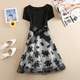 连衣裙子女夏季新款韩版修身大摆欧根纱印花A字裙针织短袖公主裙