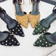 欧美显瘦尖头细跟女鞋中跟单鞋水钻方扣高跟鞋蝴蝶结黑色工作鞋潮