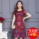 时尚复古印花雪纺连衣裙女2017夏新款气质修身短袖旗袍改良A字裙
