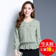 雪纺衫女长袖衬衫2017春季新款条纹女装上衣T恤宽松妈妈装打底衫