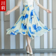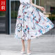 雪纺半身裙女夏2017新品时尚系带印花沙滩裙大摆中长款仙女长裙