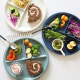 壹贰 彩色圆形陶瓷分格早餐盘分格水果盘点心盘创意分格盘子三色