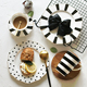 简约欧美复古金边黑白条纹波点早餐盘牛排盘下午茶咖啡杯碟马克杯