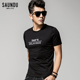 【2件装】纯棉短袖t恤男装夏季黑色圆领简约字母印花修身半袖体恤