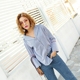 蓝色竖条纹衬衫女长袖韩国一字大V领露肩宽松套头2017早春款衬衣