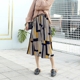松紧高腰印花半身裙几何格纹2017春女中长款显瘦雪纺a字百褶裙子