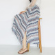 梦露 小吊带背心裙中长裙 竖条纹螺纹针织连衣裙 V领背心长裙