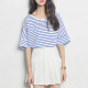 宽松大码横条纹t恤女夏短袖纯棉原宿bf风海军风t恤女